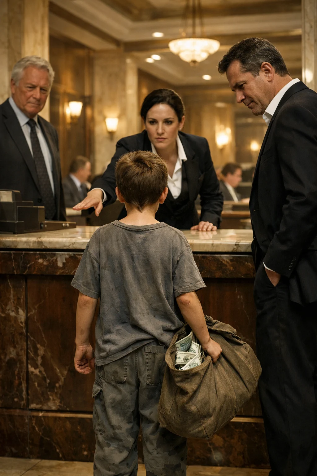 Tog trena banka nije bila samo mermer, staklo i zlato. Bila je sudnica u kojoj su presudu donosile oči jednog dečaka i tiha svedočanstva papira. Klijenti su se pogledali međusobno, pa oborili glave, kao saučesnici u tišini koju su još malopre pažljivo negovali. Niko se nije pomerio. Niko nije našao reči.