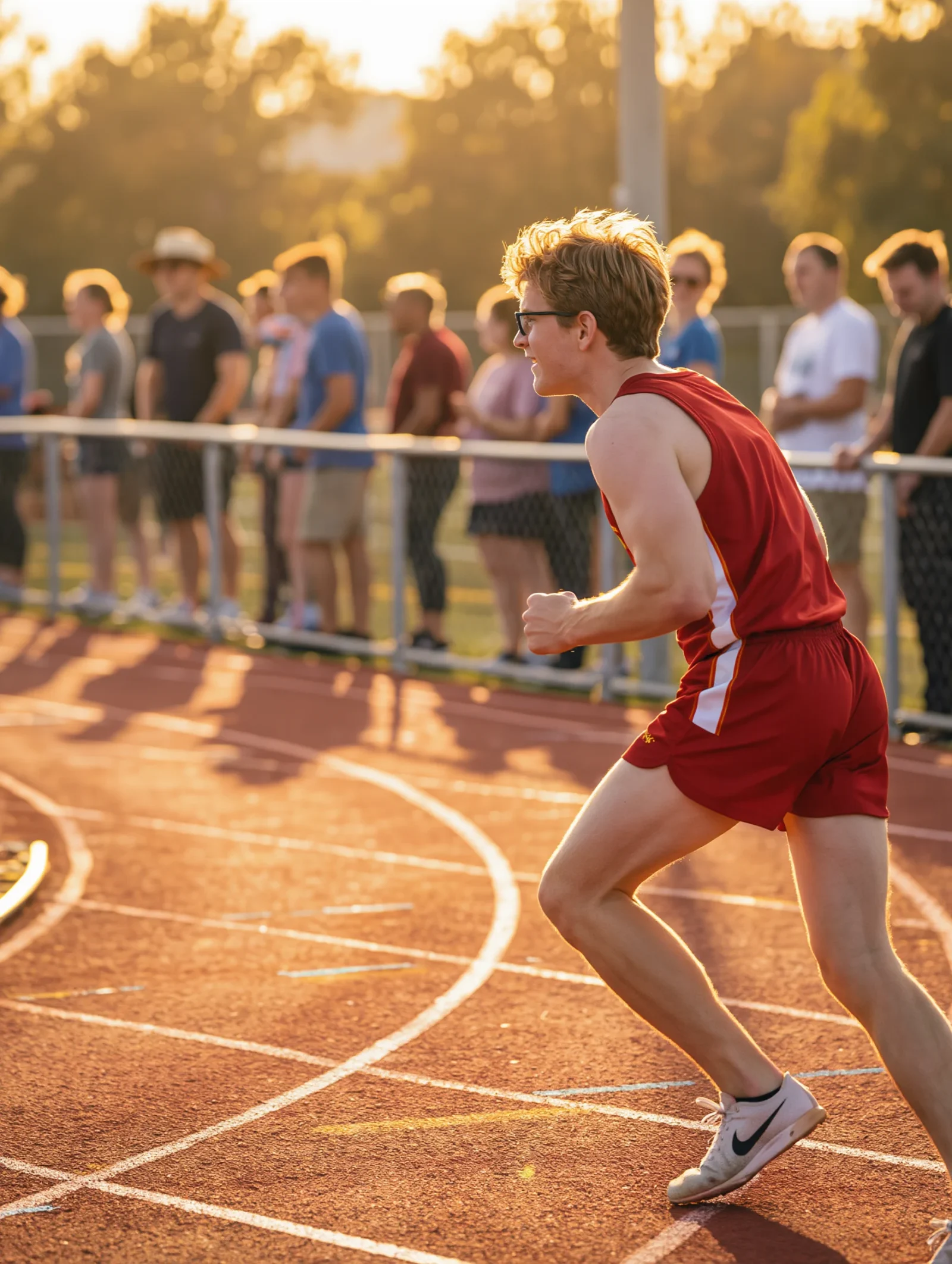 Državno finale. Najveća trka do tada. Nancy sa telefonom, spremna da snimi. Pored nje Dana, majka Calebova. I on je nekad trčao — dok mu saobraćajna nesreća nije uzela noge pod sobom i ukrala san. Sada je bio pored staze, u kolicima, sa pogledom koji je i dalje znao sve krivine. Pucanj pištolja, Brennanov start — čist, jak, kontrolisan. Sve je mirisalo na pobedu.