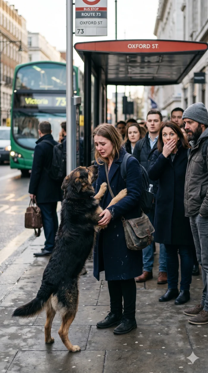 Pas je tiho zastenjao, drugačije, dublje — kao da se u taj kratak zvuk slilo sve njegovo bezglasno očajanje. Šape su mu jače pritisle njen kaput, telo zadrhtalo, kao da razume da mu je to jedina šansa da bude shvaćen. Ljudi su i dalje samo gledali, zbunjeni, nespremni da naprave prvi korak.
