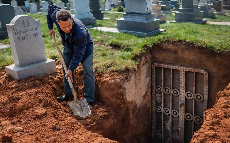 Posle sati mukotrpnog rada, lopata je zvonko udarila o drvo. Danijel je kleknuo, rukama razgrćući lepljivu zemlju. Ispod je izronio poklopac običnog, grubog borovog kovčega — istog onog koji je tri dana ranije spustio u raku.
